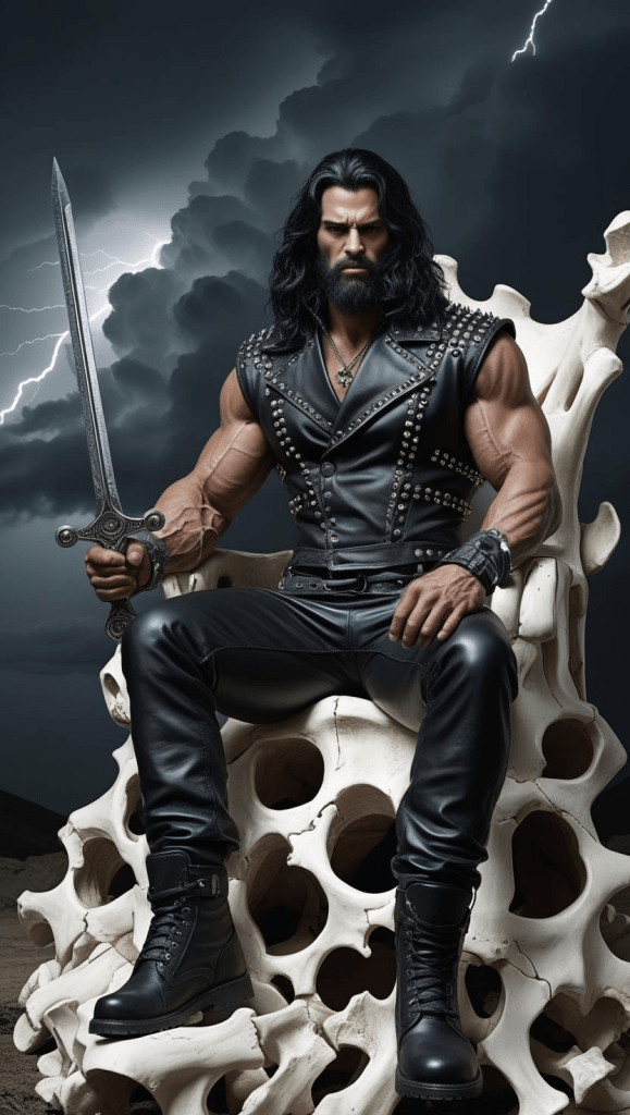 I tried to think of one single image or scene from “The Heart of War” that I’d want to see and that AI might think was fairly easy to create. I typed in; Ares God of War on his Throne of Bones. It gave me 4 images. The closest of which, to my mind, is