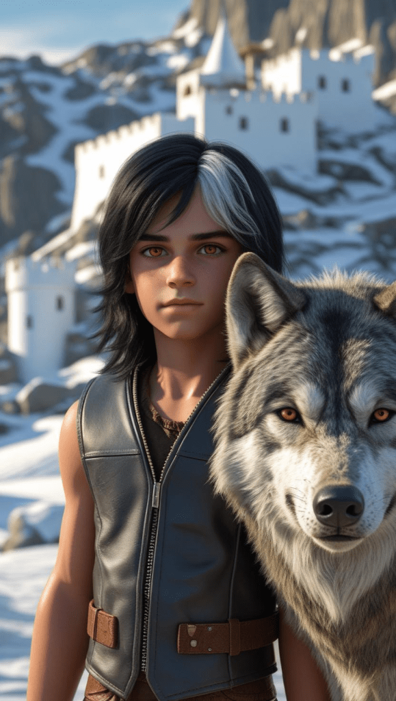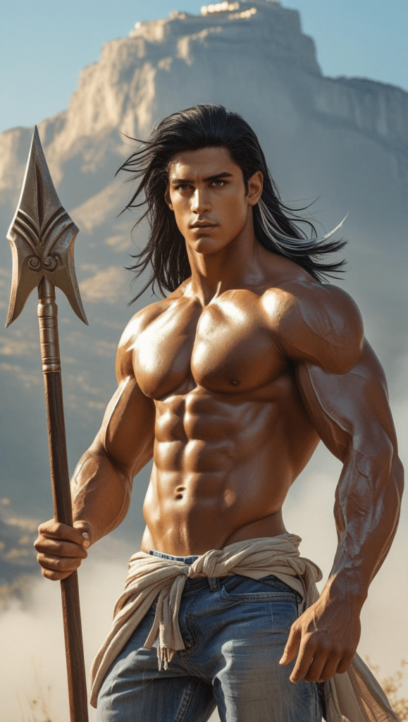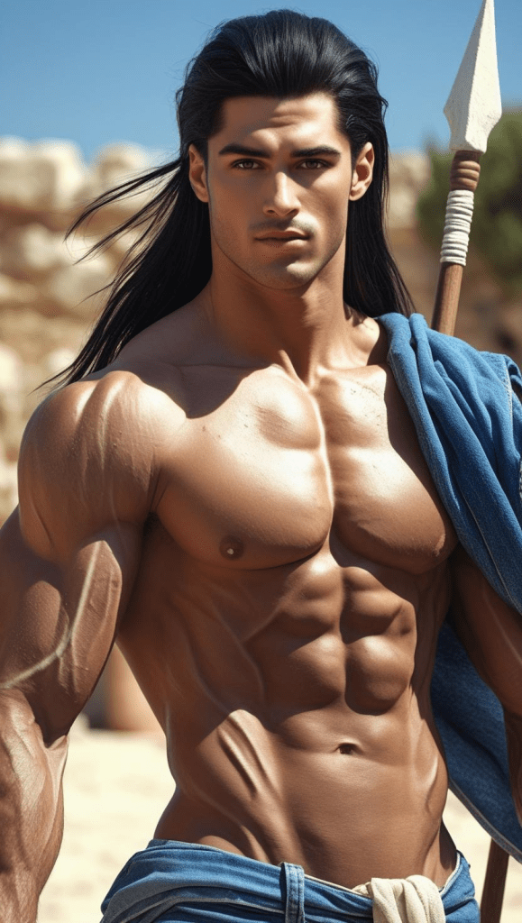 You have no idea how difficult it is to get that white stripe in his hair. I’m learning a new language called AI-ese. I tried the words ‘patch’, ‘swath’, ‘stripe’, ‘line’. I kept getting the sides of his head shaved and he was wearing war paint. Trying to put a spear in his hand….oh my! The tip is sticking out from behind his shoulder, as it should be, but instead of just hanging down behind him there’s a pole in his hand. Weird.