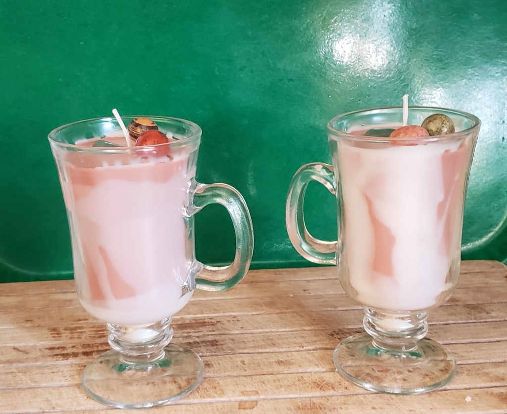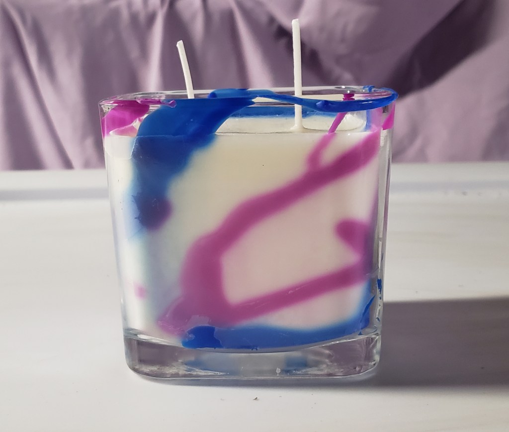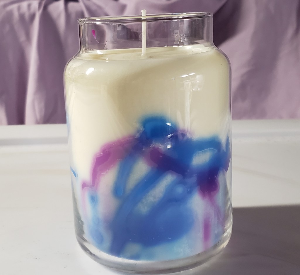 A while ago, I wanted to know if making a tye-dye candle was even possible. It is. I watched a few videos on YouTube and had fun duplicating the effect. I tried to do it their way, I really did, for the life of me I’ll probably never know just exactly how they do it no matter how many times I watch the video.